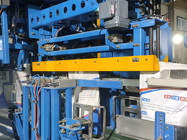 6.當(dāng)達(dá)到設(shè)定重量后通過包袋小車達(dá)到縫包位置,縫包裝置完成縫包,再次包裝袋到達(dá)碼垛輸送線完成這一過程,準(zhǔn)備進行下次包裝循環(huán)。