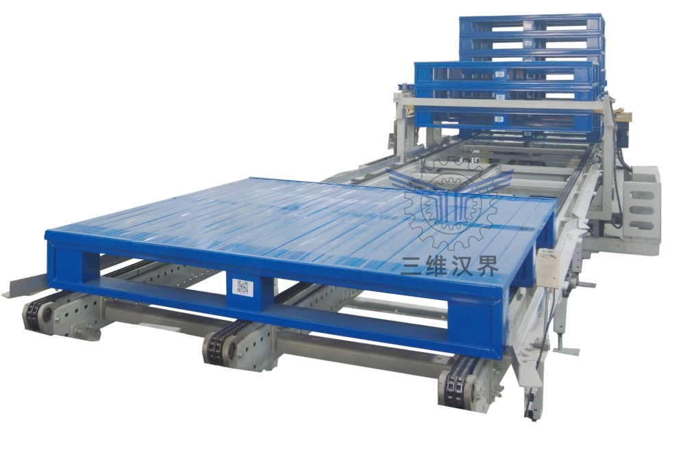 自動供托機構(gòu)是全自動噸袋包裝系統(tǒng)中至關(guān)重要的一環(huán),它實現(xiàn)了托盤供給、定位、輸送的完全自動化,是連接包裝環(huán)節(jié)和倉儲物流環(huán)節(jié)的“橋梁”,直接決定了整個包裝線的效率和無人化程度。在這里小編以三維漢界機器生產(chǎn)全自動噸袋包裝機系統(tǒng)為例,對自動供托機構(gòu)進行簡單介紹。當然了,如果有不恰當?shù)牡胤骄凑埮u指正。